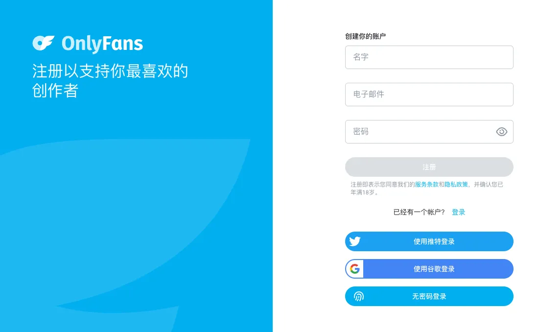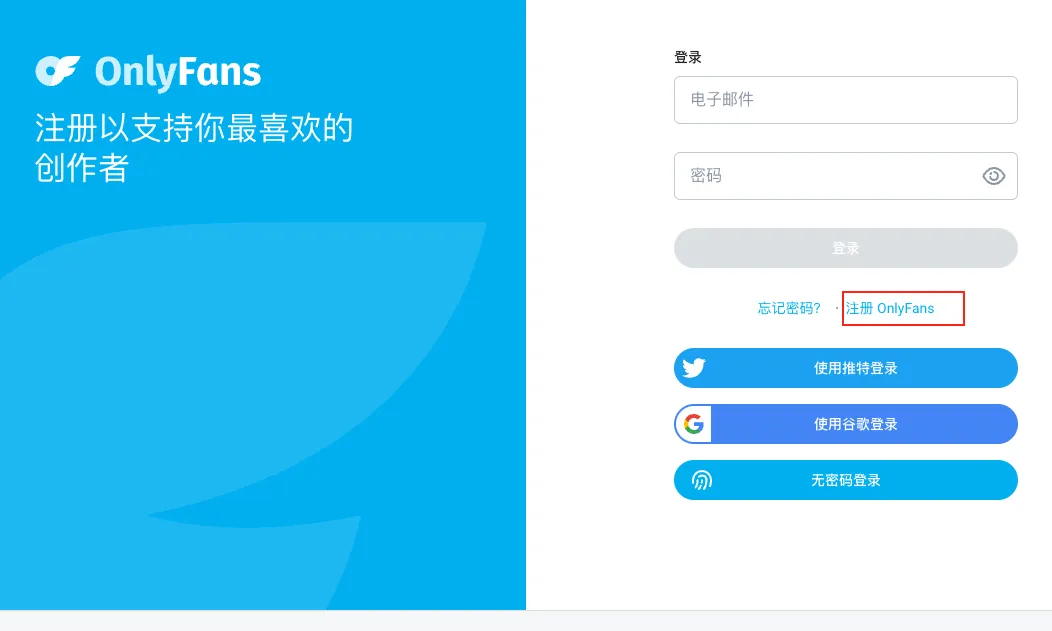 - 首先,打开 OnlyFans 网站,选择“注册 OnlyFans”。