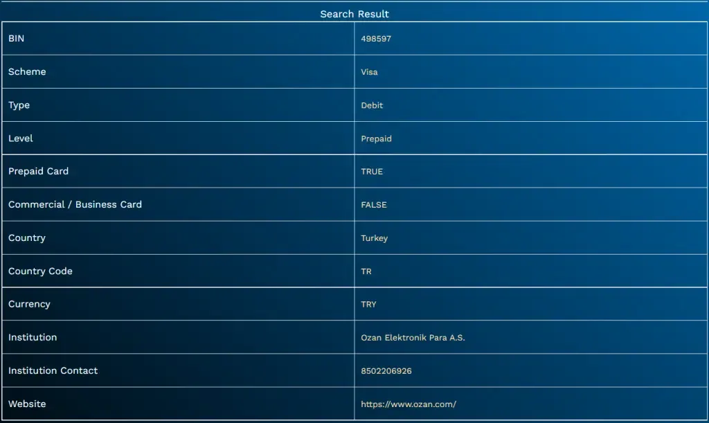 Ozan是一个电子钱包,发行的也是预付卡,BIN是498597。
