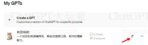 找到了需要修改的GPTs后,选择自定义GPT旁边的铅笔图标进行编辑。