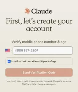 - 将该手机号码复制并粘贴到Claude注册页面的“验证手机号码”栏位中,然后点击“Send code via SMS”。在sms-activate.org页面上保持关注,您将很快收到来自Claude的验证码。