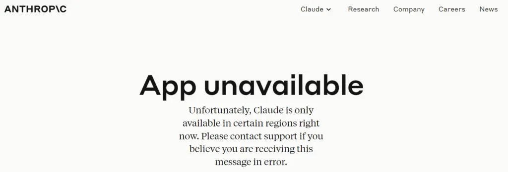 由于Claude尚未在中国及香港开放,因此Claude封锁了香港地区的IP地址。当香港用户访问Claude官网时,会出现“您所在的国家目前不支持Claude”的错误提示。