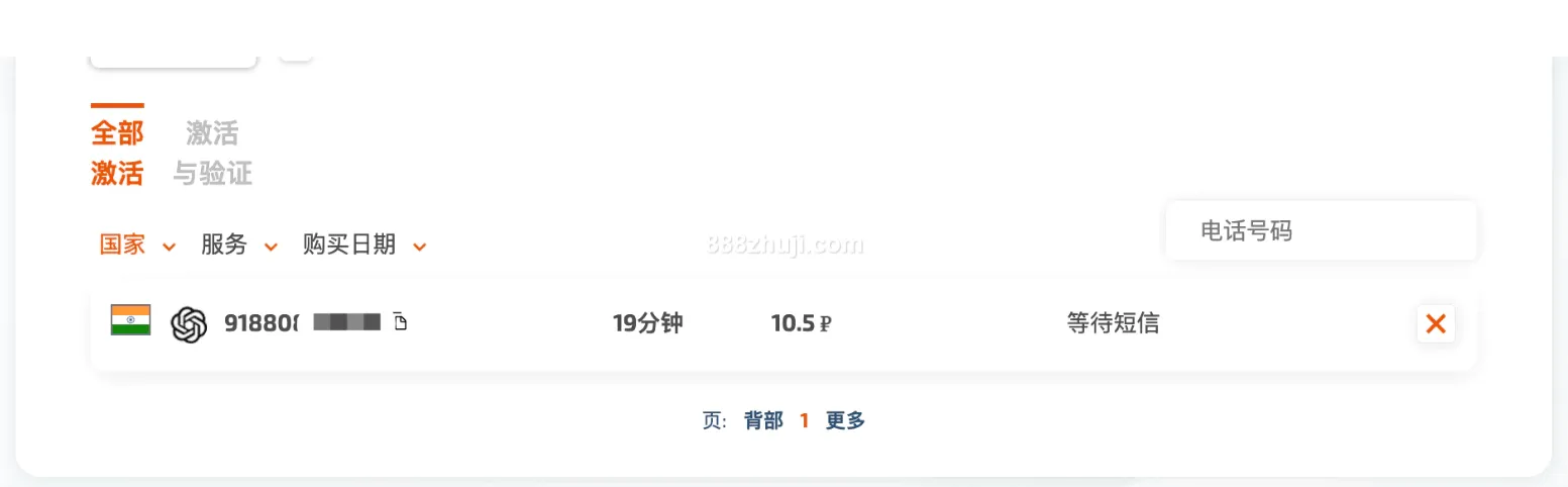 购买 sms-active 的验证服务,获取一个有效期约 20 分钟的电话号码。