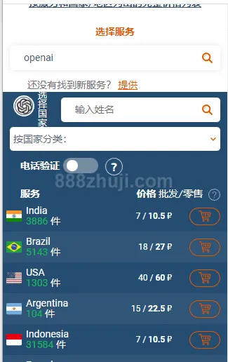 - 接收验证码的虚拟手机号码:可以选择现成的服务。