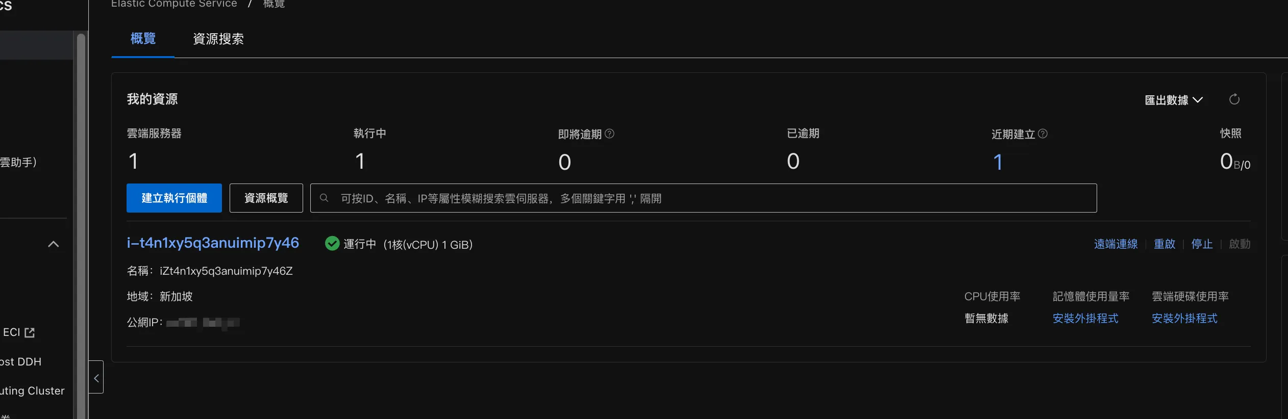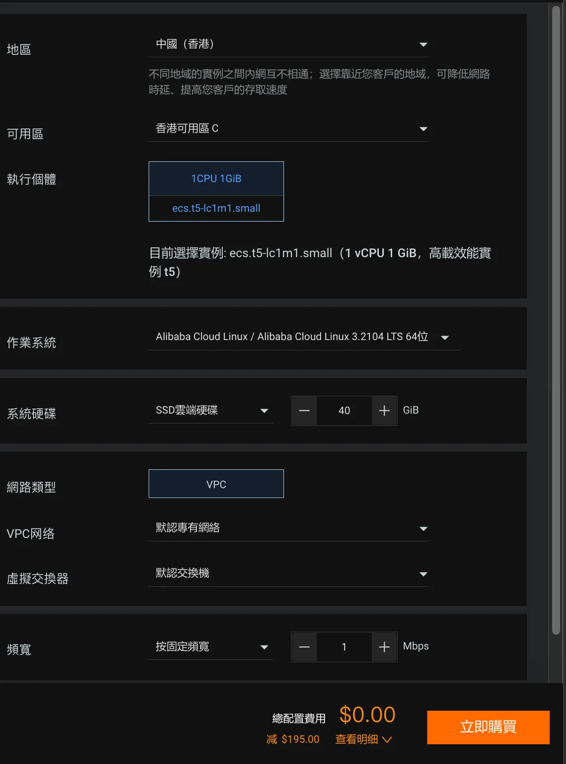完成添加后,您可以在试用页面领取资源,配置为 1C 1G 40GB 1Mbps。