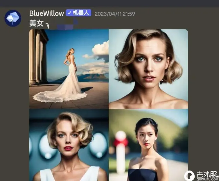接下来,小编将演示Bluewillow的功能。我们尝试让它绘制几张美女图像。