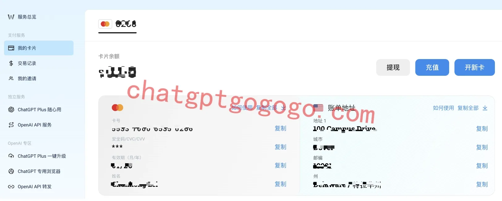 注册成功后,点击我的卡片,即可查看虚拟卡信息,充值成功后即可使用。