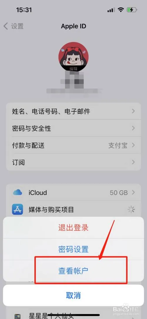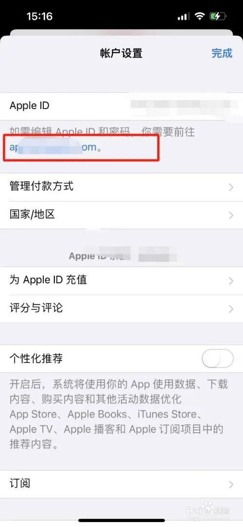 - 进入账户界面后,在 Apple ID 下点击蓝色字体,进入官网。