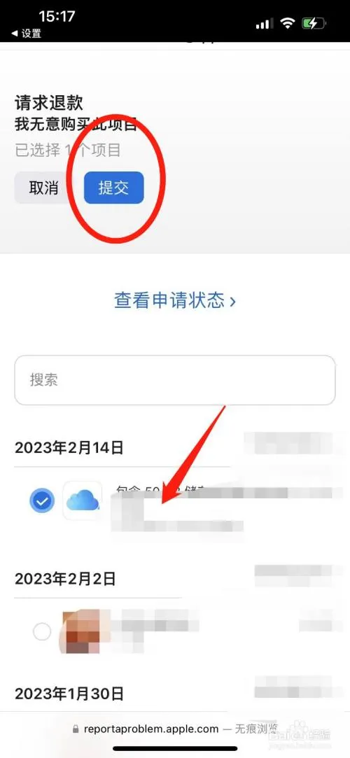 - 进入退款申请界面后,勾选退款项目,选择请求退款的理由,点击提交即可。