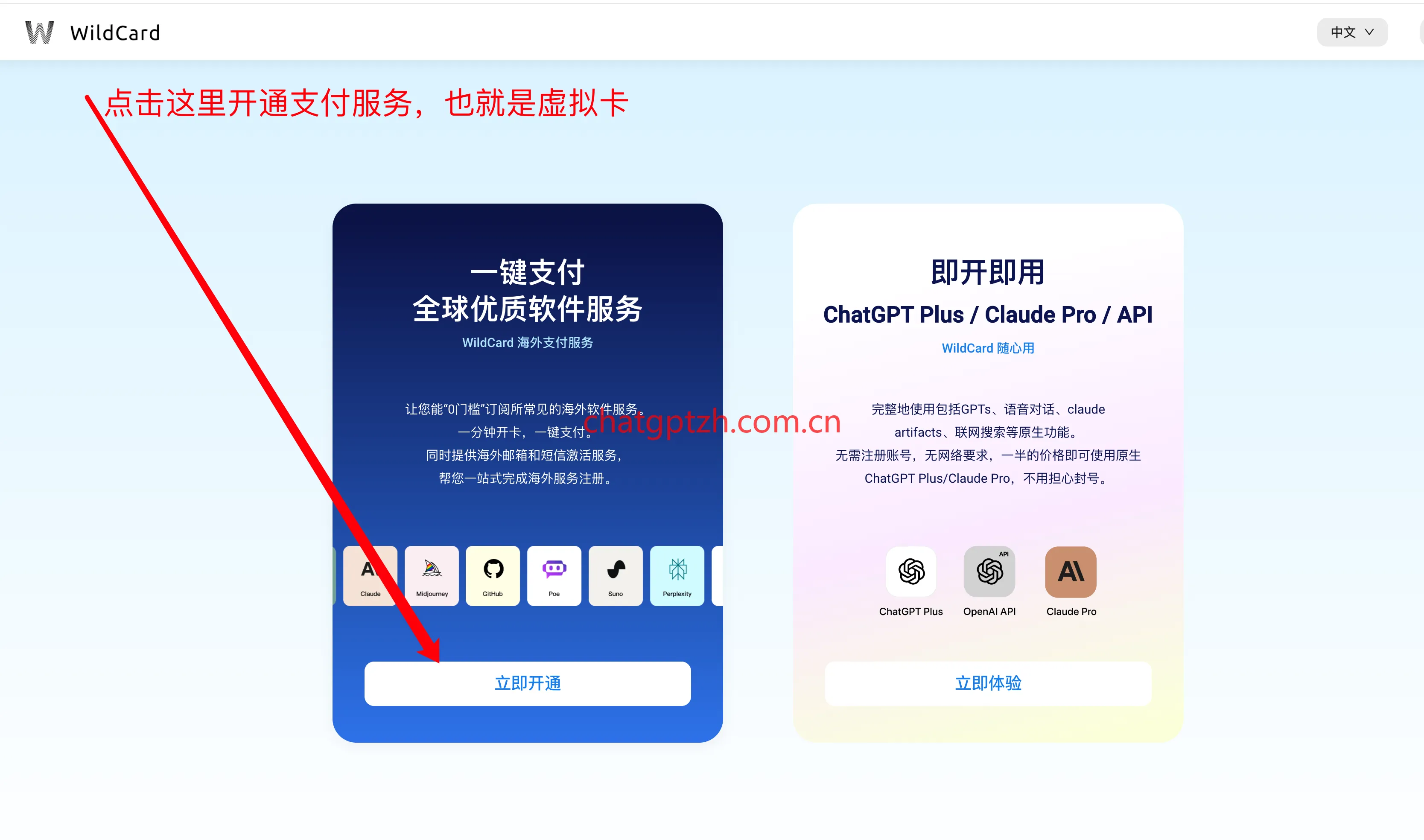 如果需要虚拟信用卡,请点击第一个 立即开通。