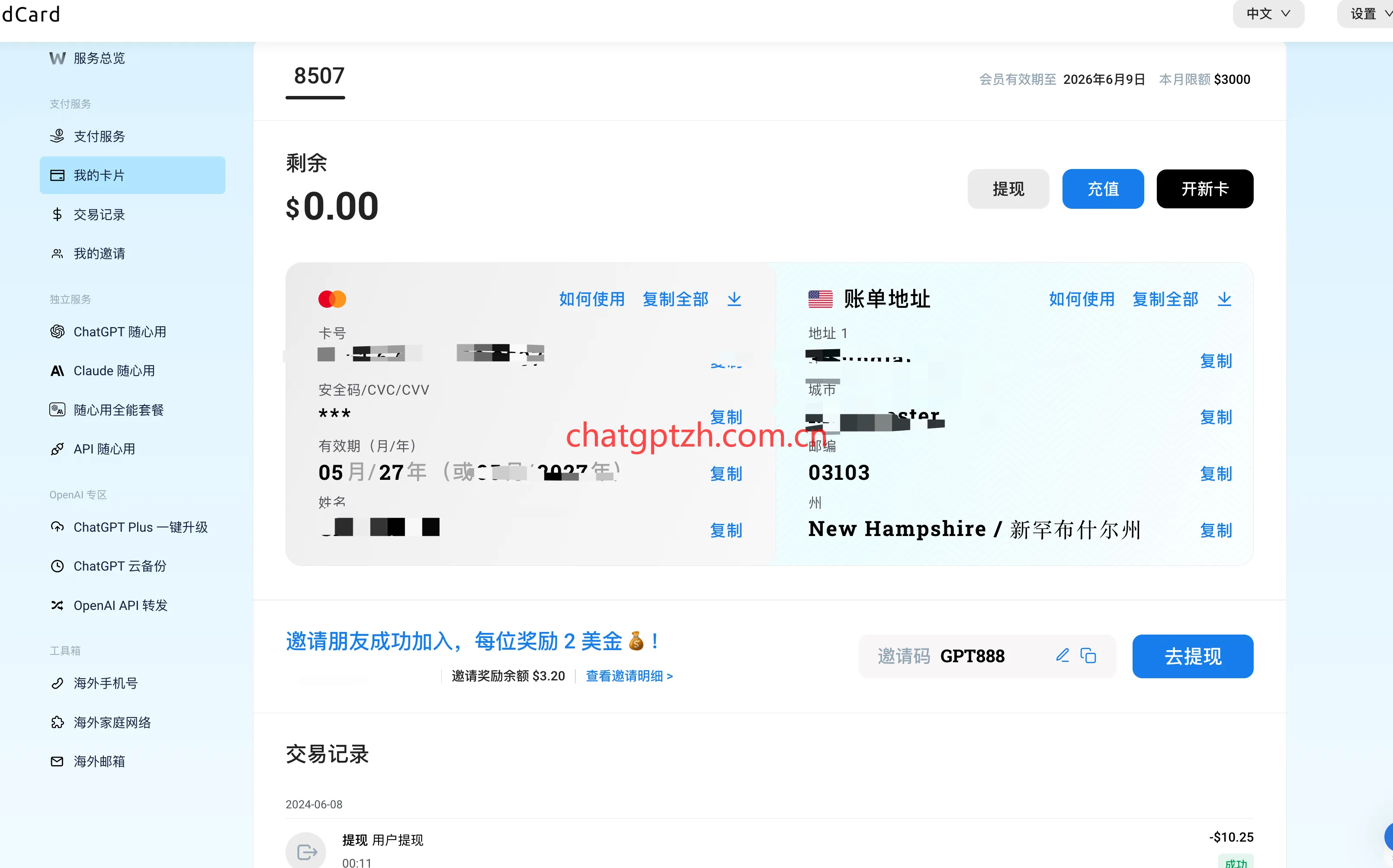 - 完成支付后,您将获得一张“虚拟卡”,不仅可用于支付 ChatGPT,还可用于 Midjourney、Claude、Adobe、Twitter、Facebook、Github、Google Play、Poe、Suno 等多个海外支付场景,性价比非常高。