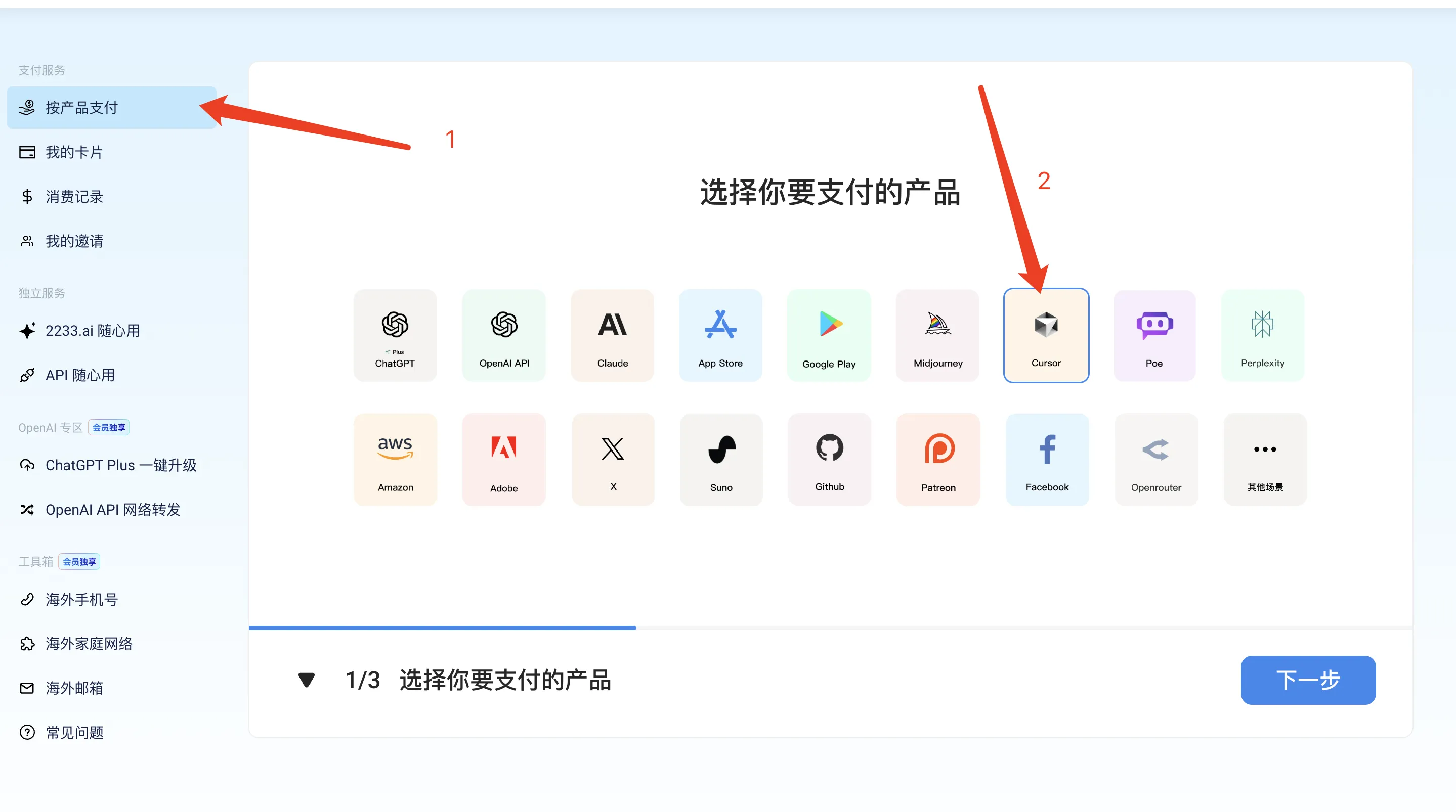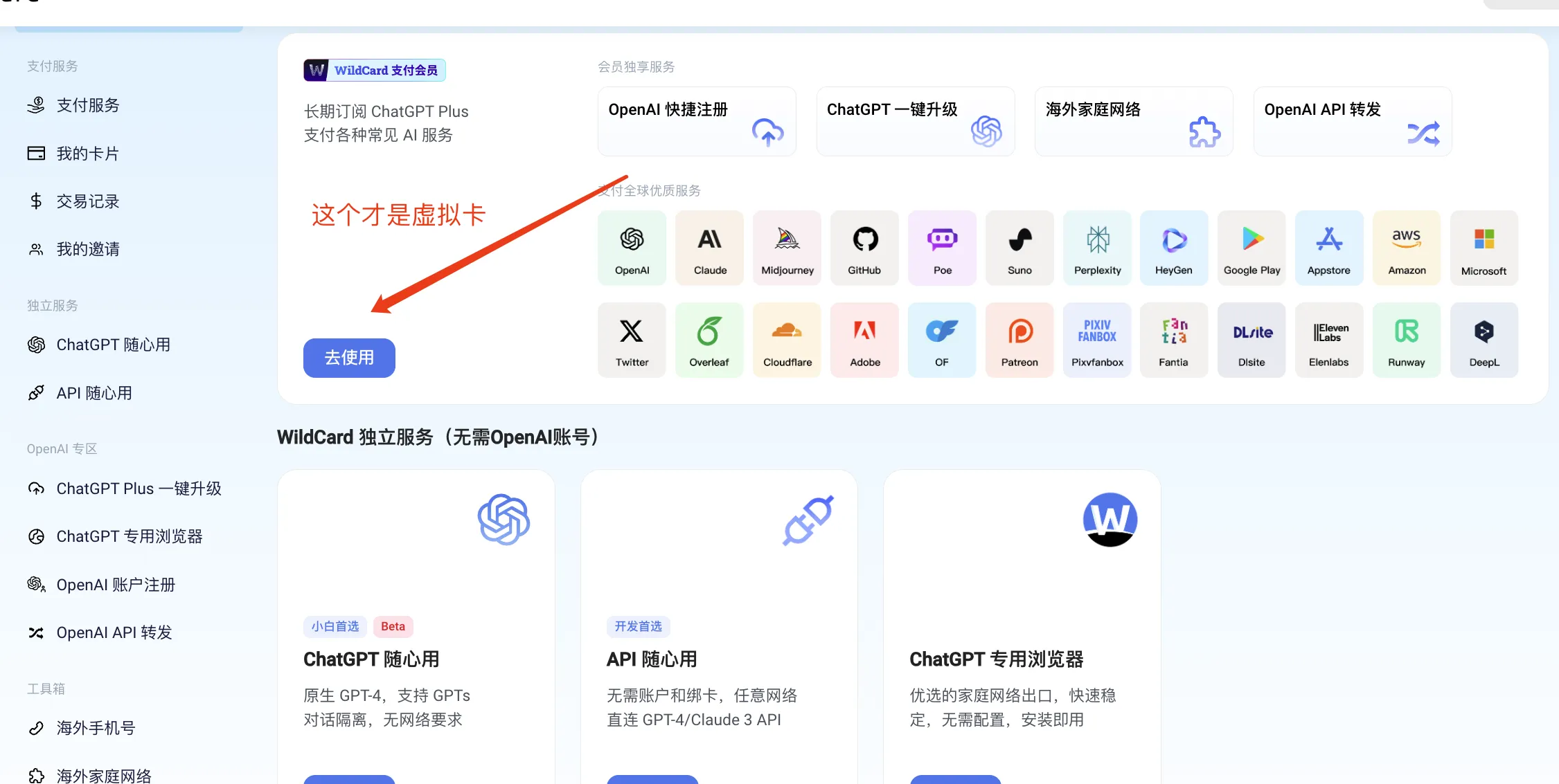 服务需要选择【野卡支付会员】,这是一种虚拟卡,已经稳定上线一年,建议使用虚拟卡进行订阅。