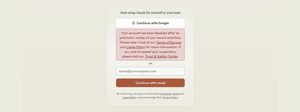 近期,许多 Claude AI 用户在尝试登录时遇到账户被禁用,并收到提示:“Your account has been disabled after an automatic review of your recent activities。”