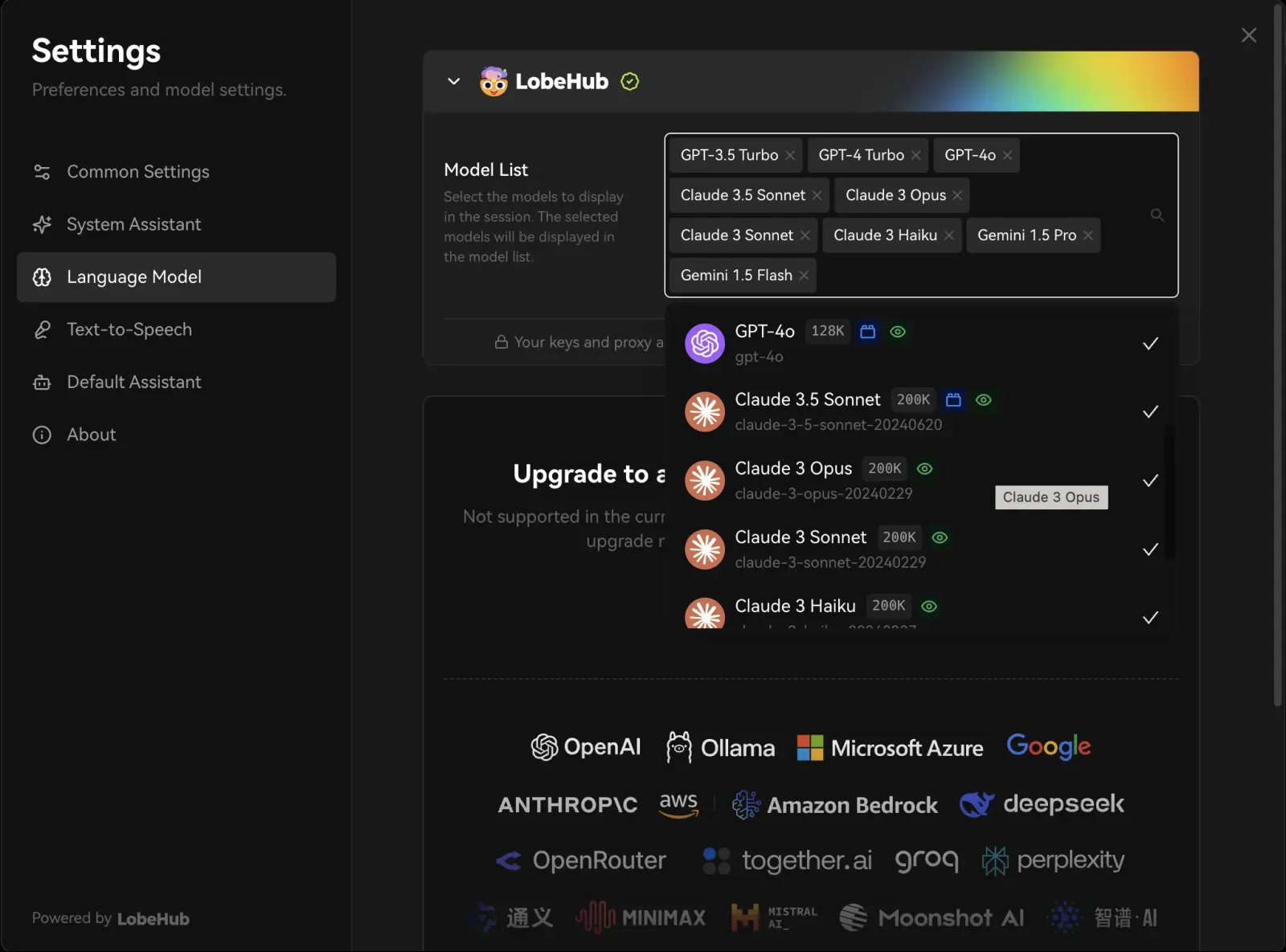 - 丰富的生态系统:构建了丰富的助手和插件生态系统,助手市场提供多种预设助手,以满足不同场景下的多元化需求。