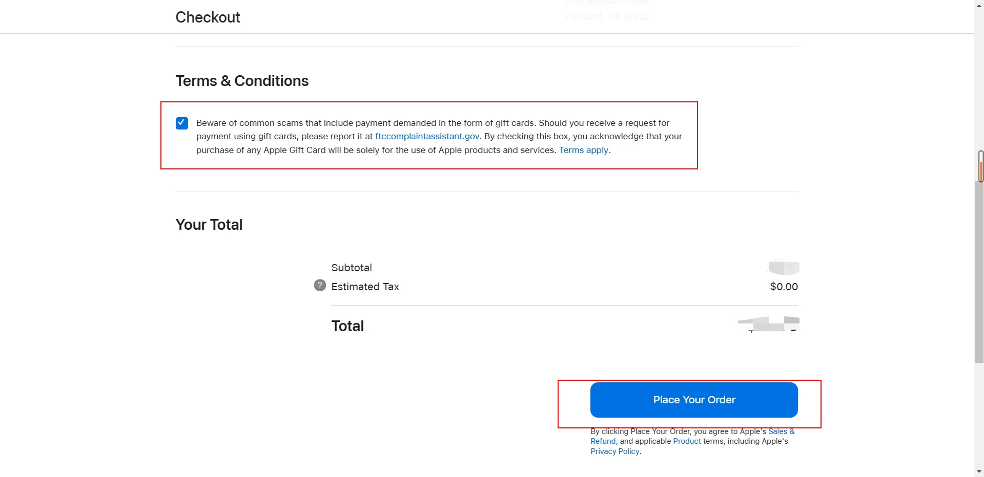 - 在最后一页确认信息无误后,点击“Place Your Order”进行付款。