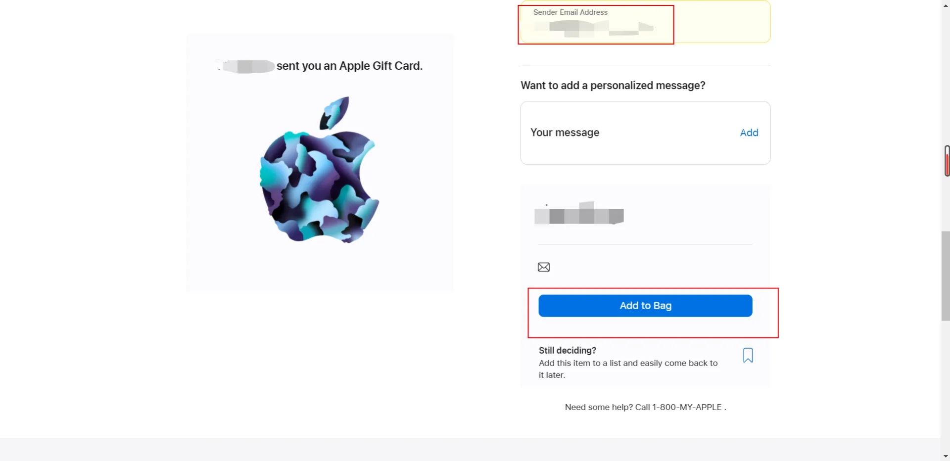 - 发送方邮件地址与接收方保持一致,然后点击“Add to Bag”。