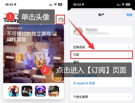 - 在帐户页面中找到 【订阅】 选项,并点击进入。
