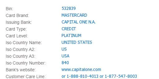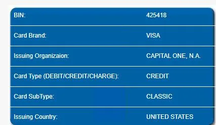 随着BOA虚拟信用卡ShopSafe的结束,许多人开始关注Capital One。这是一家以代偿信用卡起家的金融公司,提供虚拟信用卡服务:Capital One Eno,支持开出万事达(532839)和Visa(425418)两种虚拟信用卡。接下来,我们将详细了解这两种卡头的BIN数据库数据。