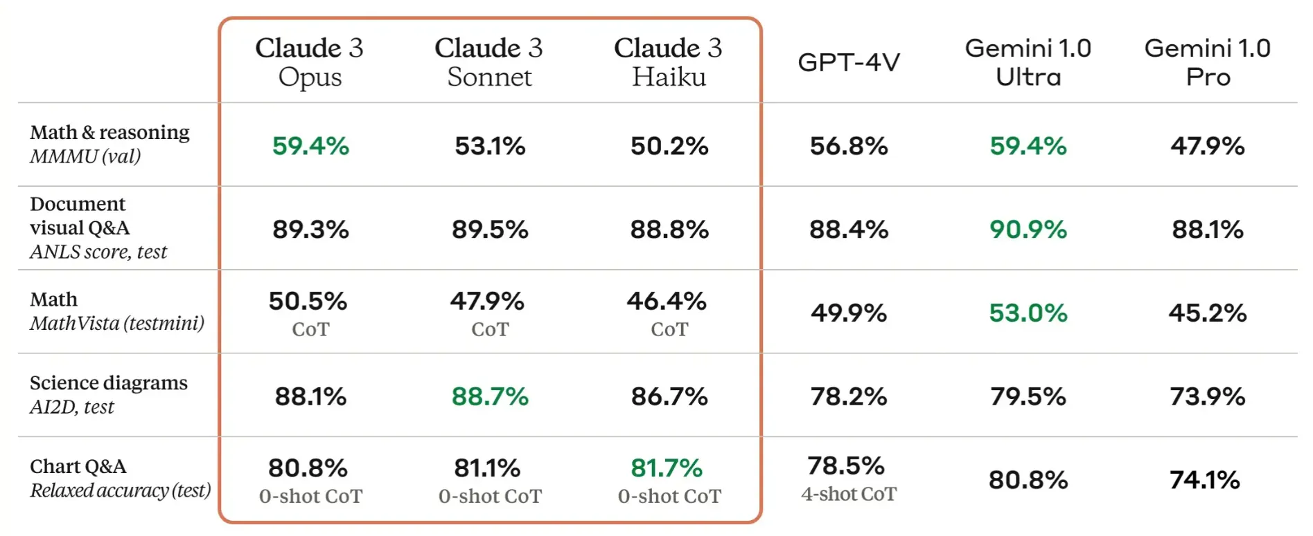Claude3在图像识别方面表现突出,尤其擅长捕捉细节。通过评测和官方演示视频可以发现,Claude3在“Science Diagrams”等方面的表现甚至超越了GPT-4V。