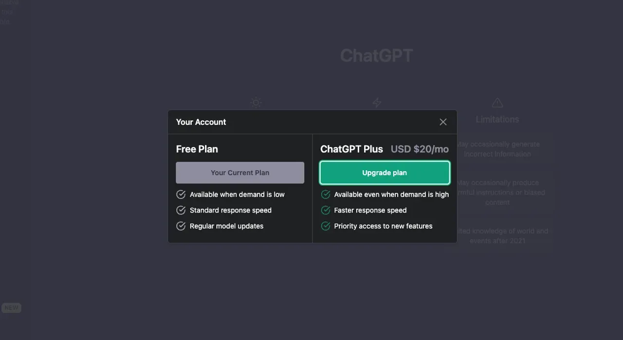 当 ChatGPT 于 11 月份推出时,最初是免费供所有用户使用。然而,随着其受欢迎程度的迅速上升,用户有时需要等待较长时间才能使用。因此,OpenAI 推出了 ChatGPT Plus 订阅计划,旨在帮助用户避免等待并享受额外的便利。
