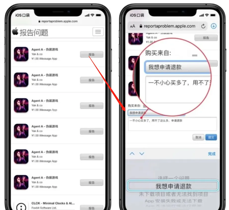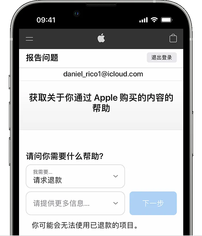 - 在 iPhone 或者网页上访问 reportaproblem.apple.com。