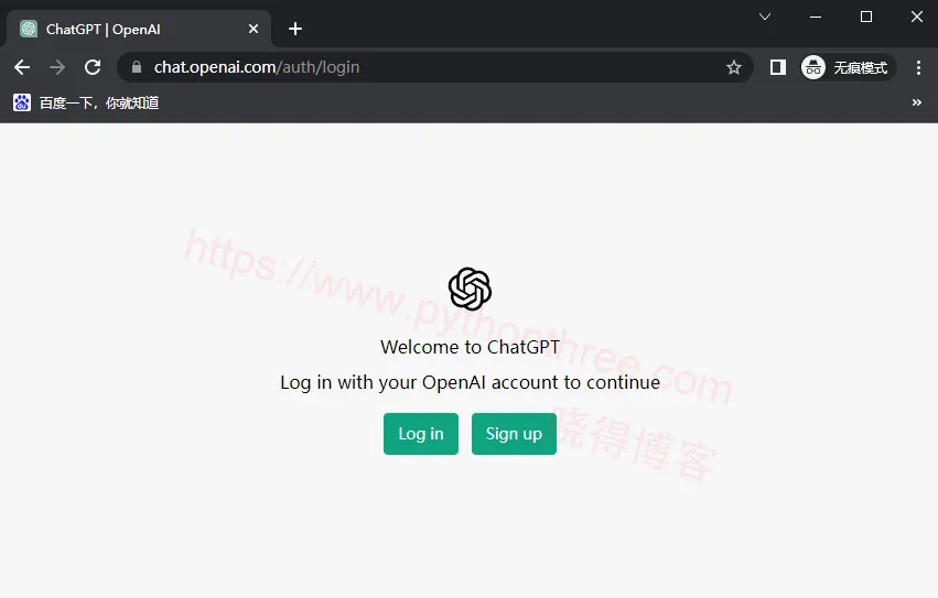 - 访问 ChatGPT 登录页面,点击“Sign up”进行账号注册(注意网络环境不能是香港、澳门等地区)。