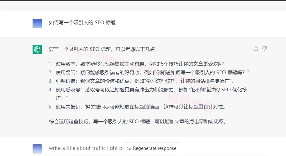 使用 ChatGPT 示例,您可以尝试撰写吸引人的 SEO 标题。