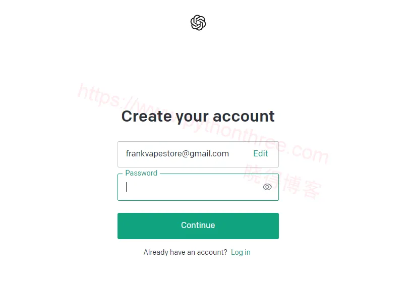 - 输入邮箱地址,点击“Continue”,然后设置密码。