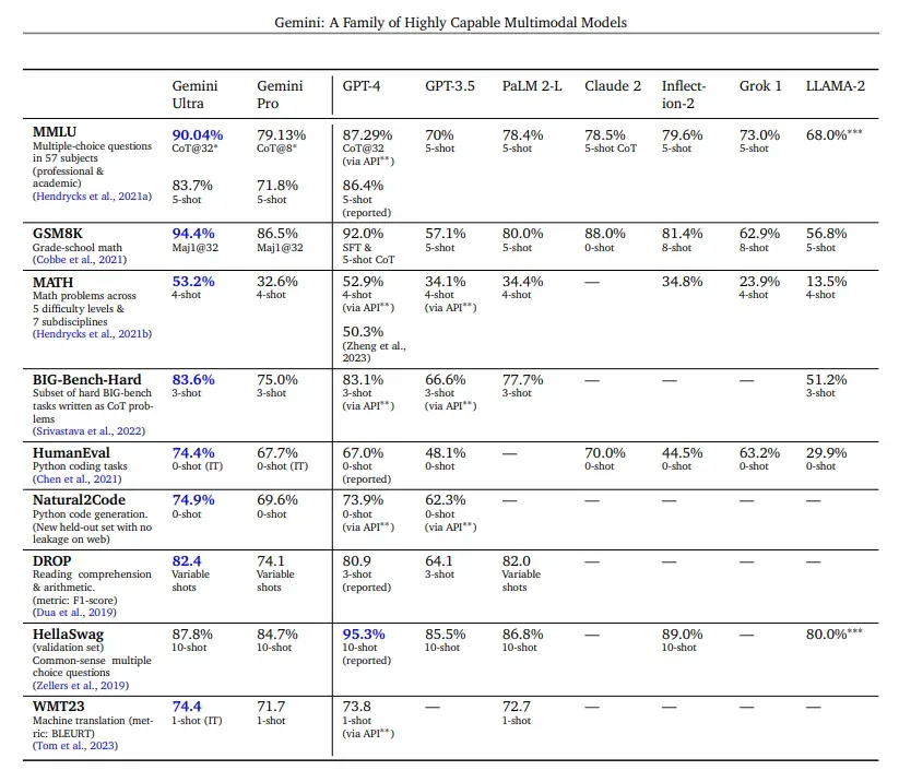 这三种模型共同构成了Google在AI领域的全面解决方案,能够在从数据中心到移动设备等不同平台上运行。Gemini Ultra版本在“大规模多任务语言理解”(MMLU)领域首次超越了人类专家的水平。