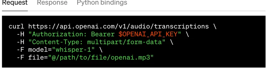 Whisper API可用于转录或翻译,并支持多种格式(如M4A、MP3、MP4等)。