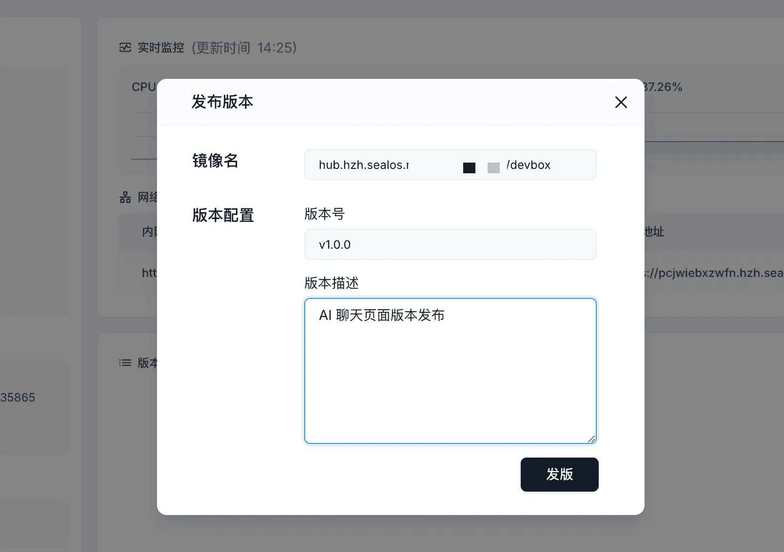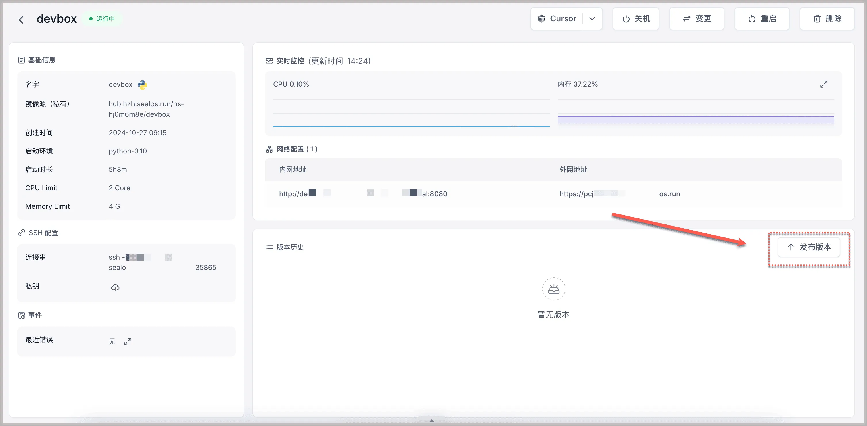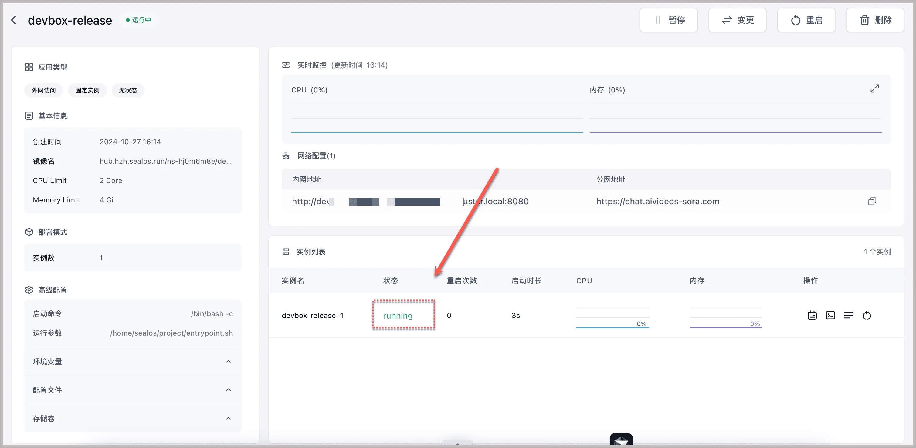 注意,发布将暂时停止 Devbox,发版后会自动启动。