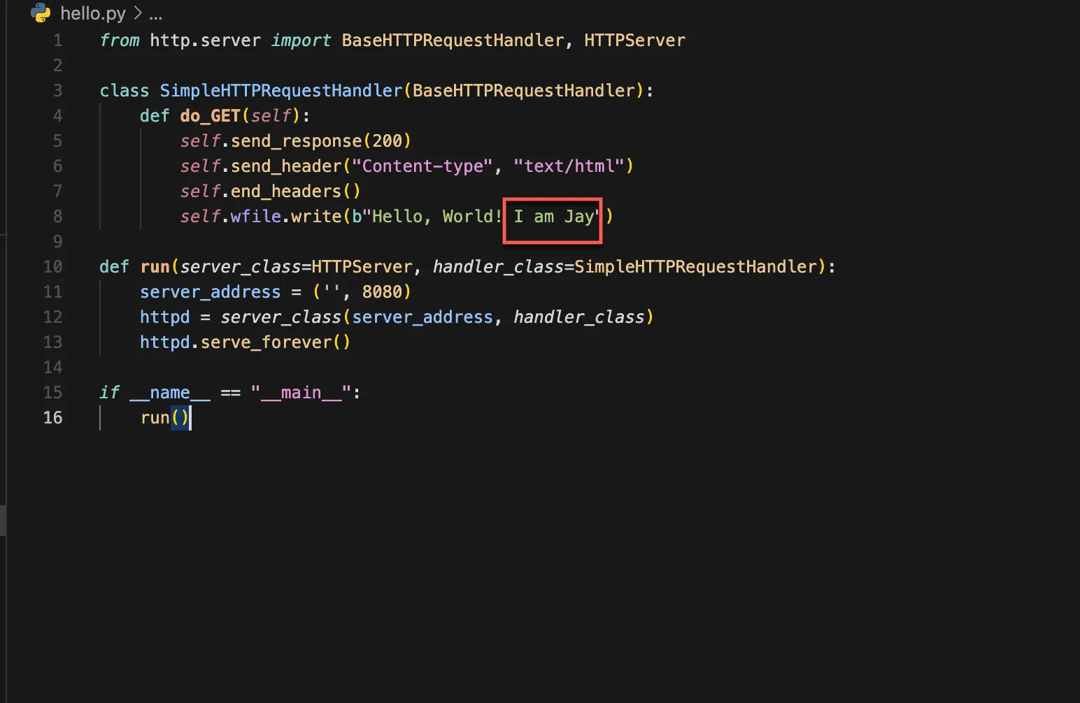 以修改网页内容为例,添加 I am Jay 字符,记得保存代码。