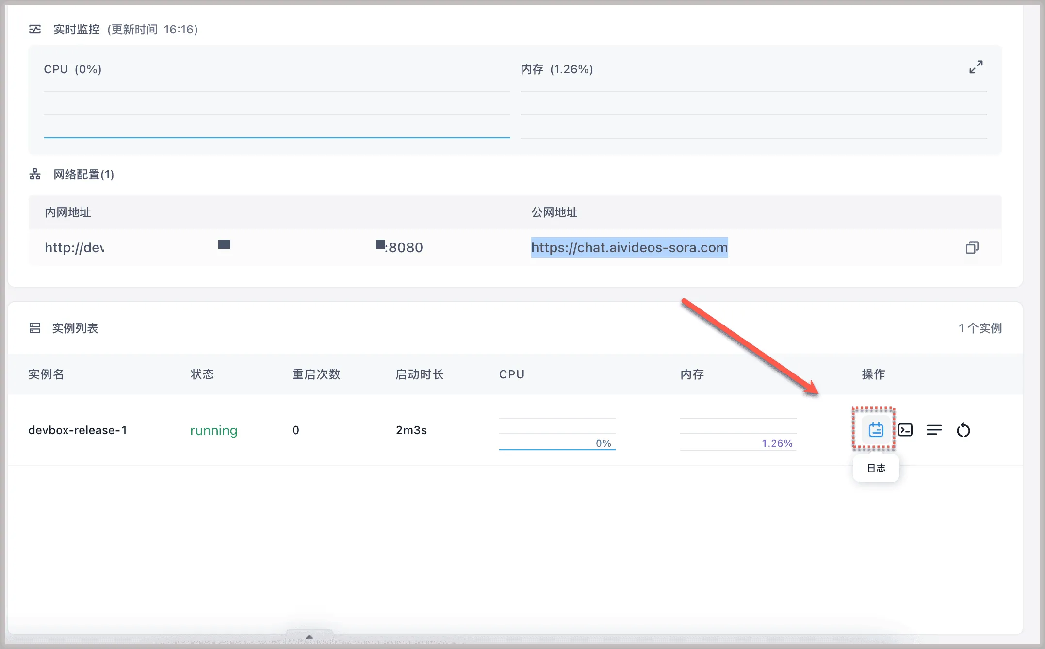 如果出现 error,可以点击右侧日志按钮进行查看。