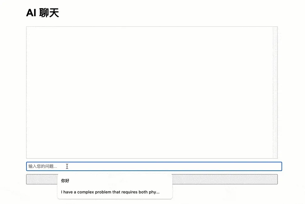 需求:用户在页面聊天窗口输入信息,点击发送后,将收到 AI 流式输出的回复效果。