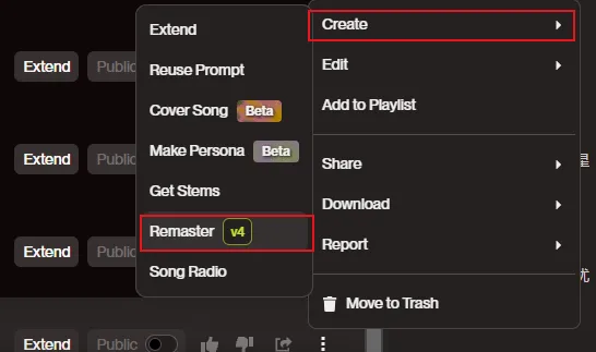 此功能在 V4 上得到了加强,可以将之前一首歌曲的声音和风格复制到新歌曲中,保持一定的一致性。