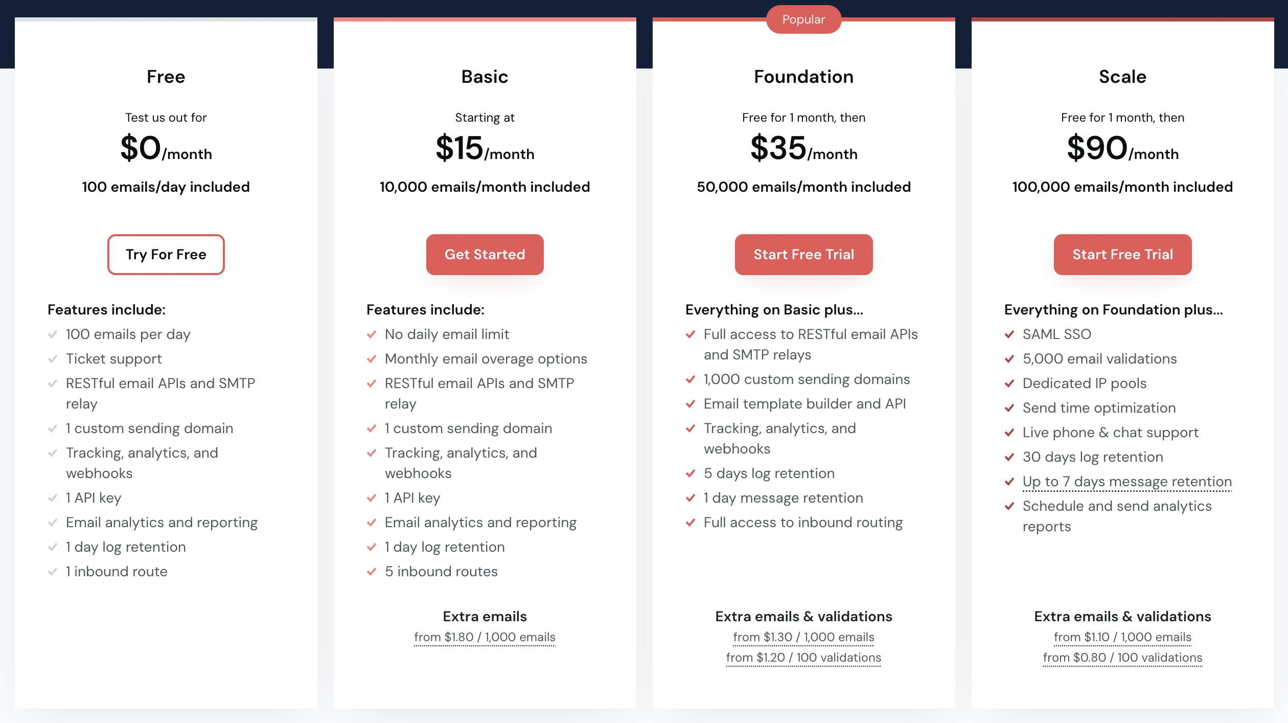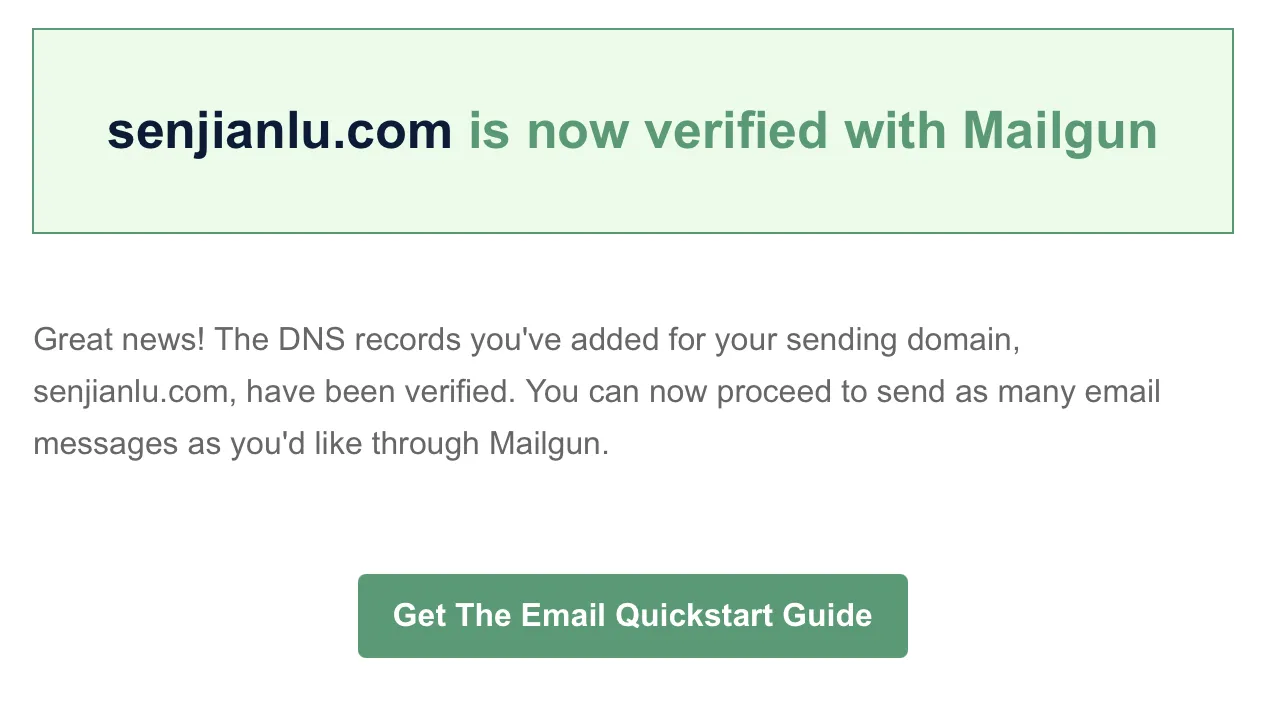 Mailgun 提供免费的每日 100 封邮件的发信额度,对于个人博客来说绰绰有余。