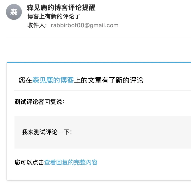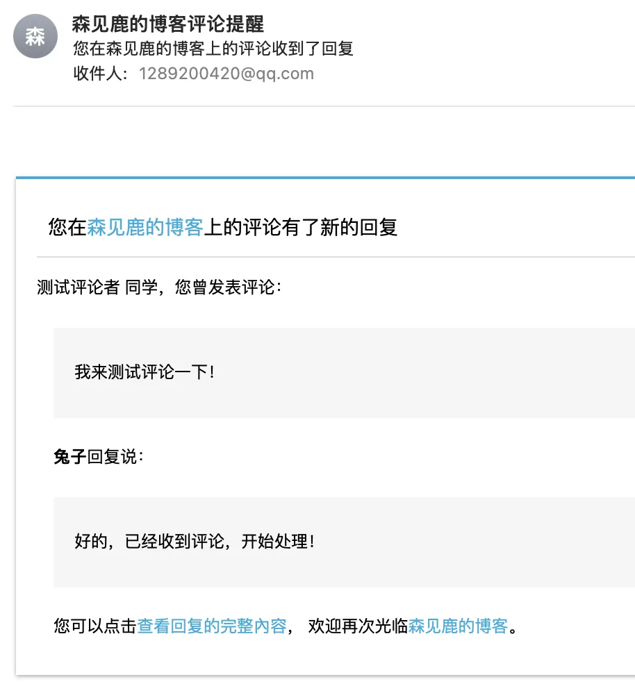 当其他用户评论时,管理员邮箱会收到邮件通知: