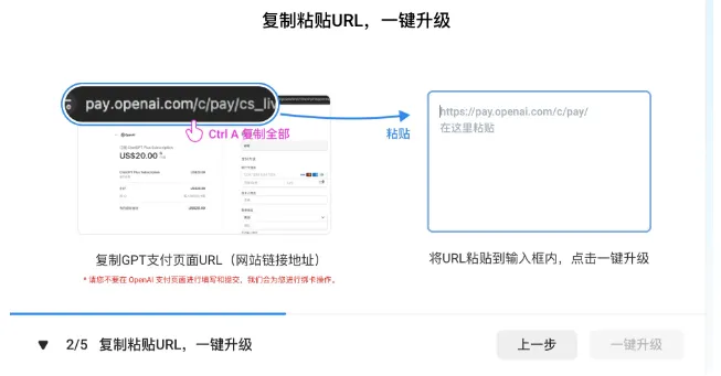 按照下方的操作流程,获取 OpenAI 的升级付款链接。
