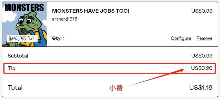 在商品订单中,Gumroad默认会收取商品售价20%的小费,用户需手动取消。