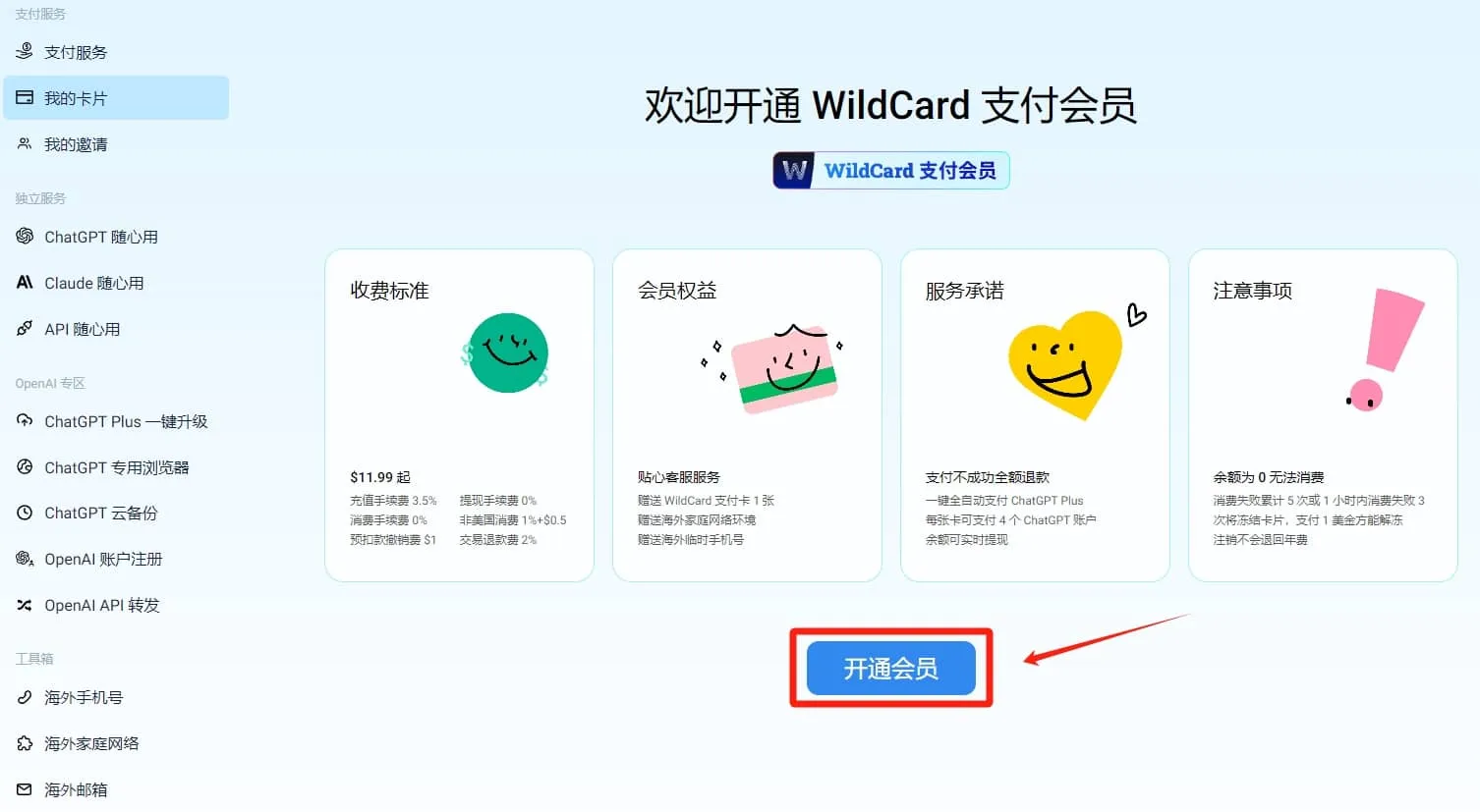 - 选择【野卡支付会员】并点击👉立即开通。该虚拟卡服务已稳定上线一年半。